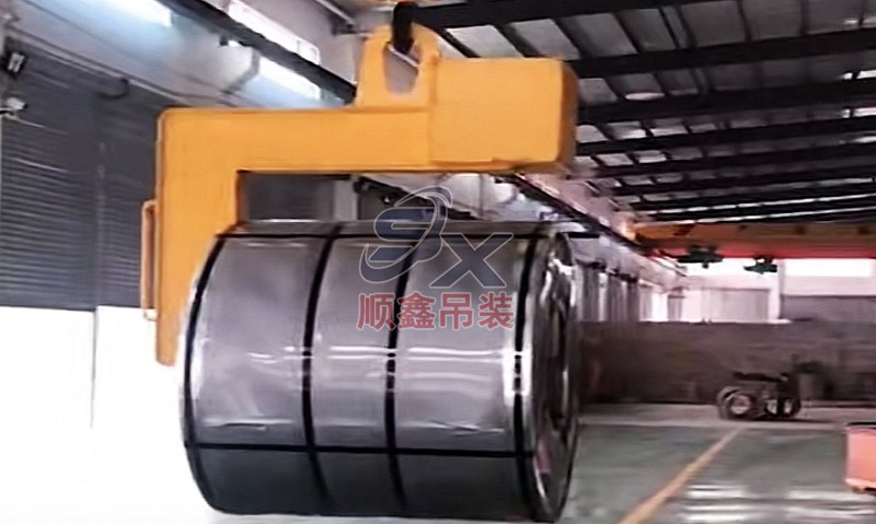 翻轉(zhuǎn)吊具通過機械剪力原理,對立式擺放的卷鋼進行單邊抓取,來完成卷鋼的裝卸,當(dāng)改變重力點時,可以對卷鋼進行翻轉(zhuǎn),作業(yè)時不傷鋼卷。其吊耳采用加厚處理,焊縫飽滿牢固、延長使用壽命。